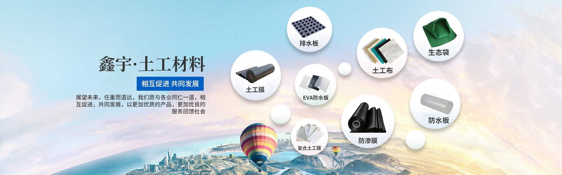 主要生產:土工膜、復合土工膜、防滲膜、防水板、土工布、排水板、EVA防水板、生態袋、防水毯、復合排水網等系列產品。集研發-生產-銷售-施工為一體的多元化企業